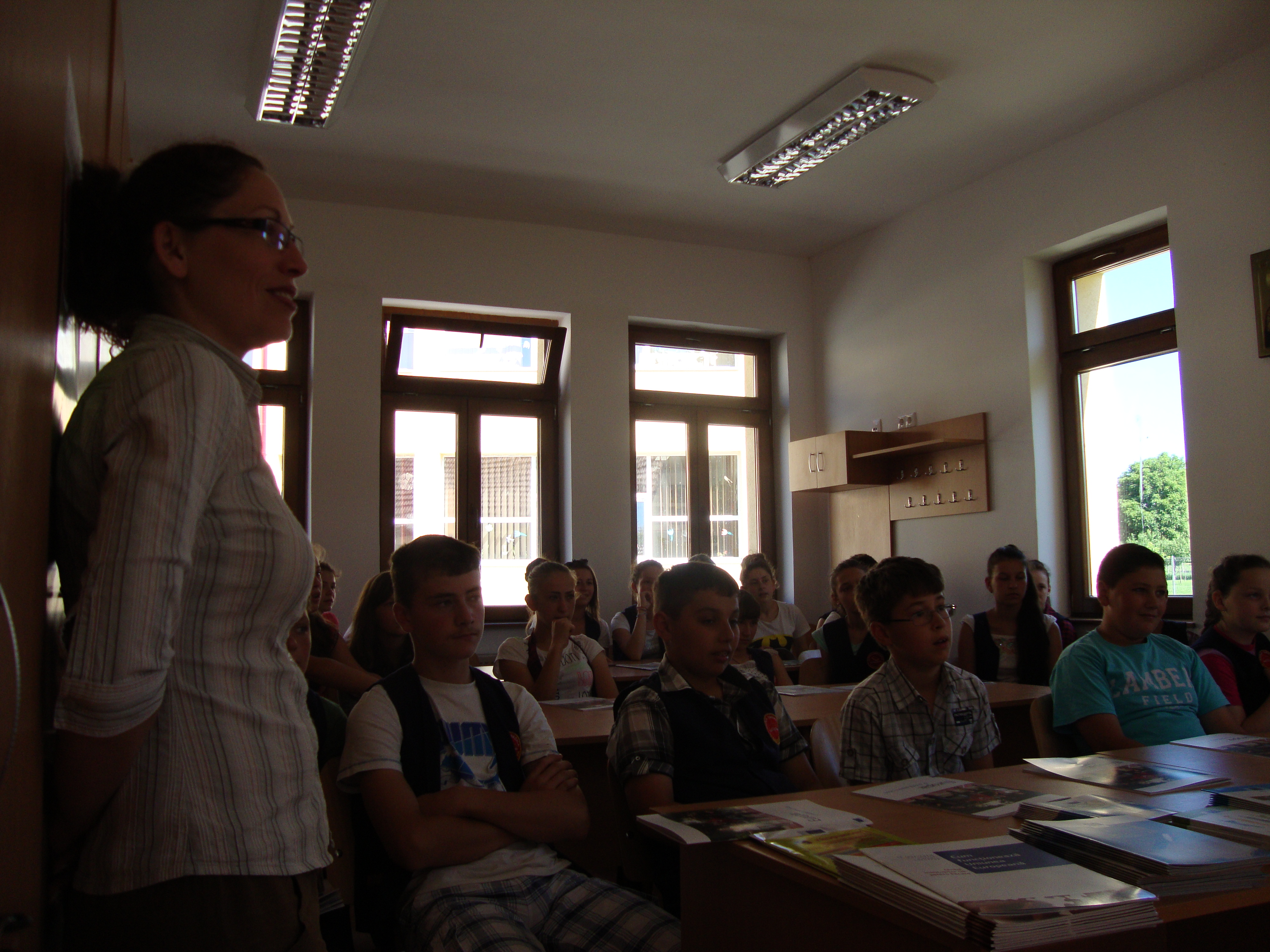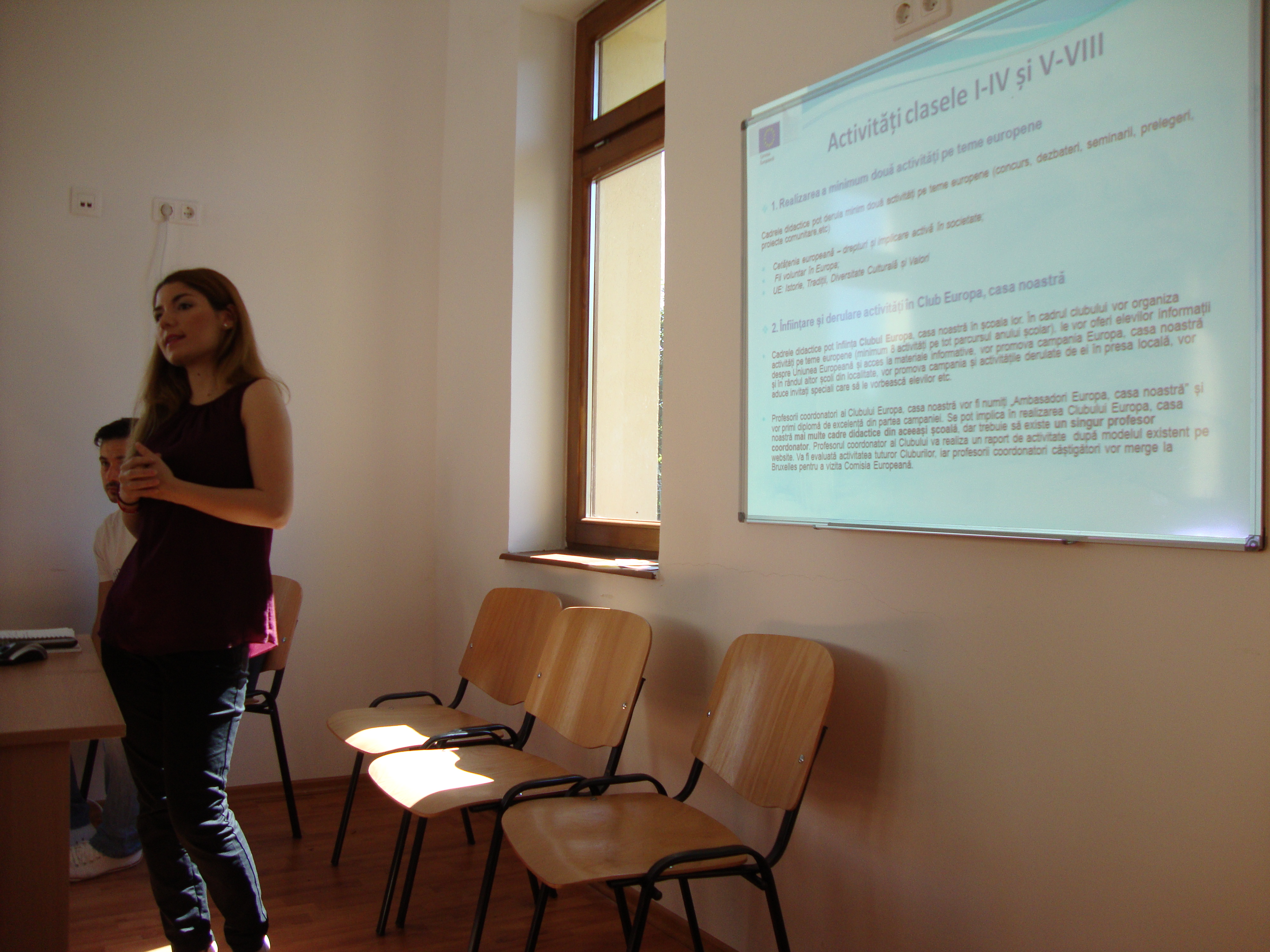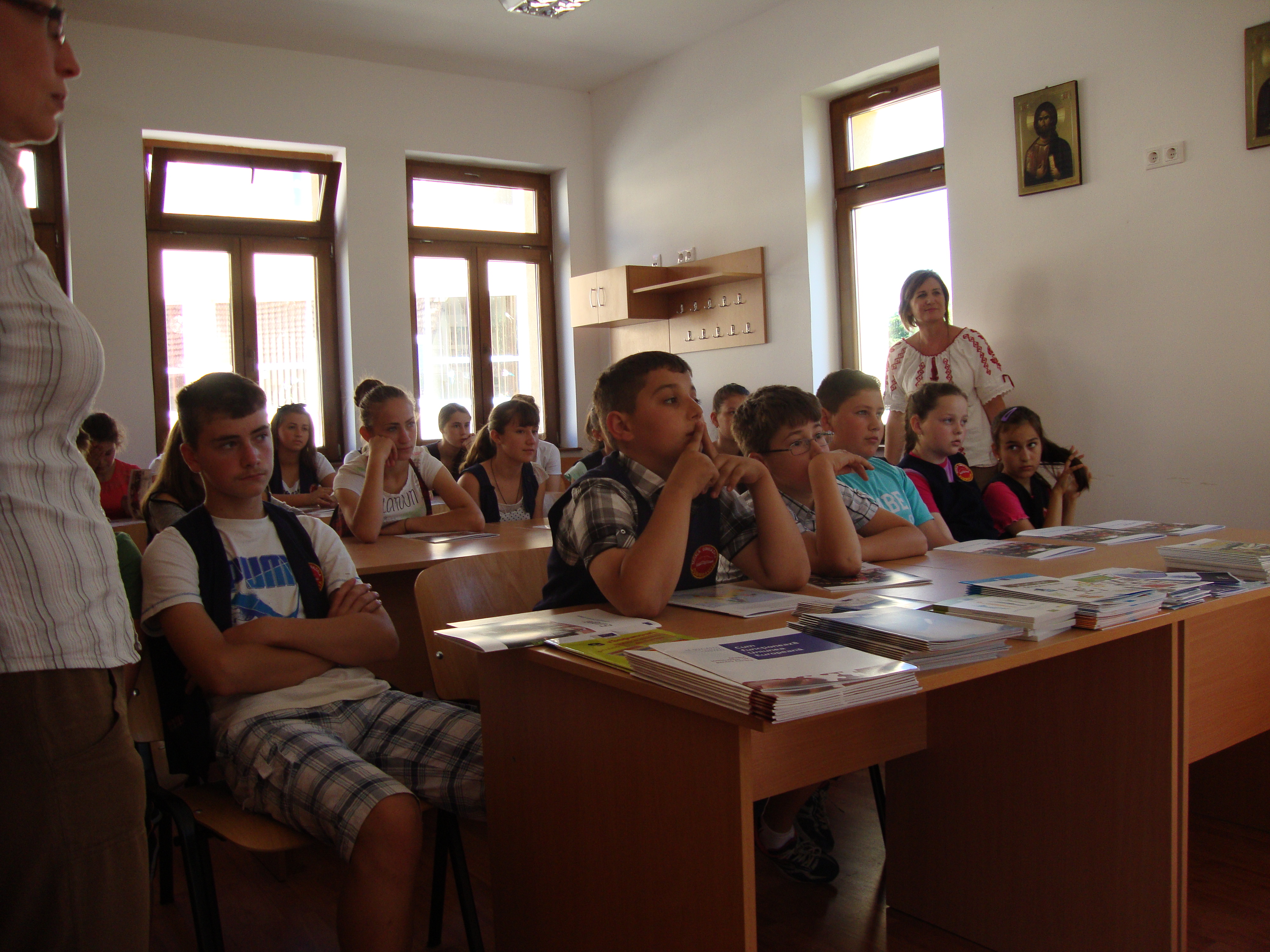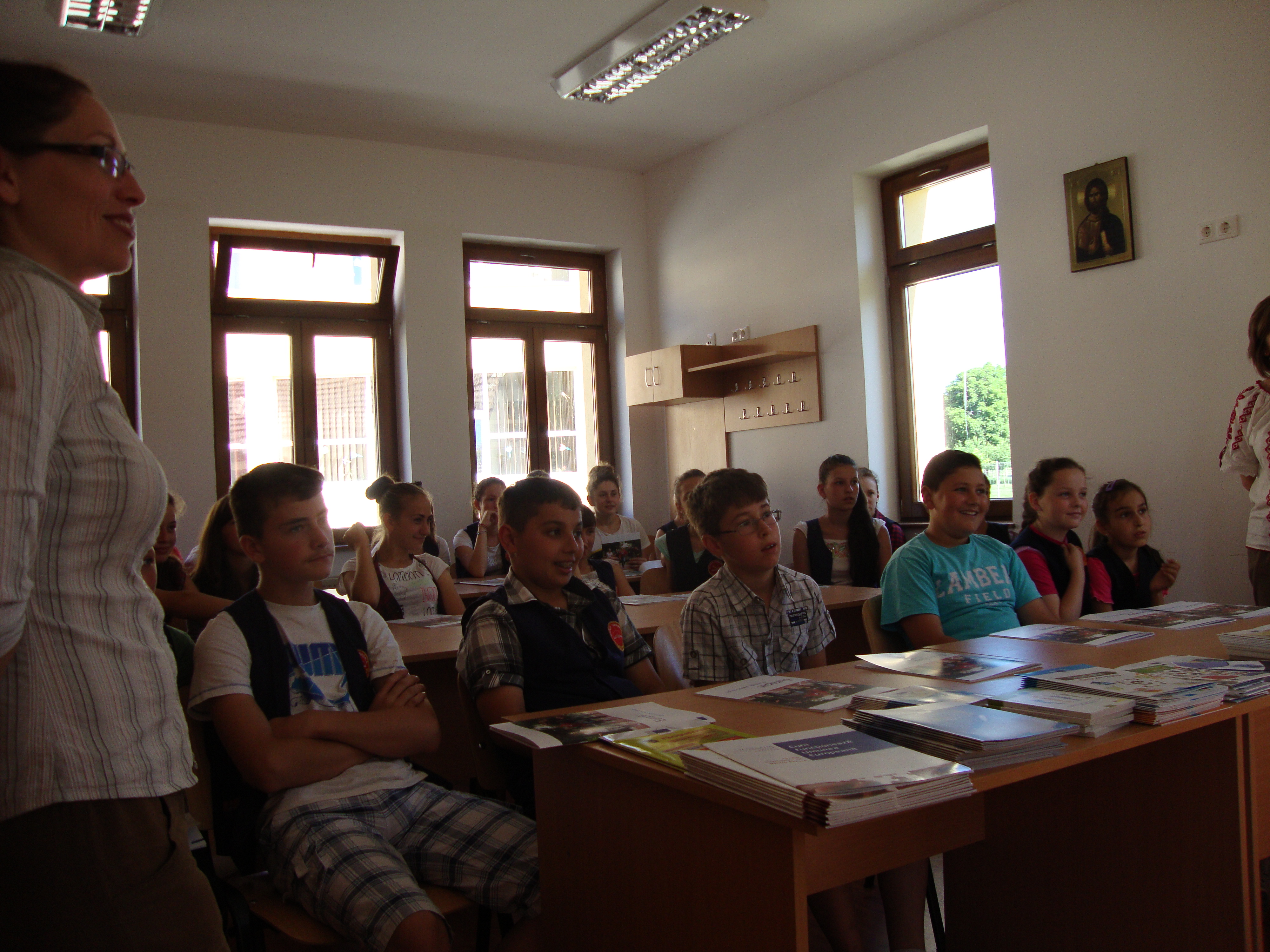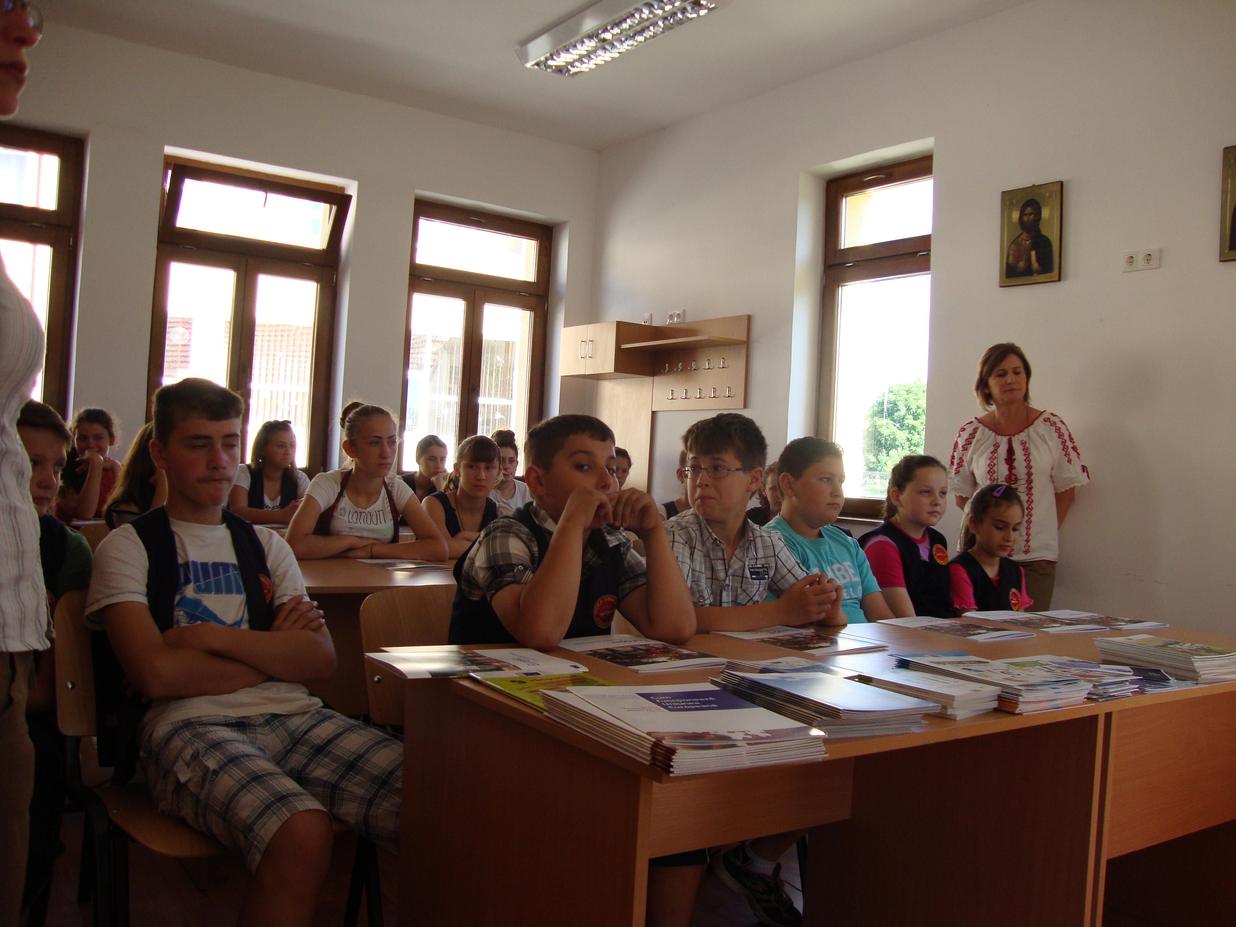 Școala Gimnazială Dumbrăvița a fost gazda primei vizite de dimineață, în cadrul căreia elevi din clasele V-VIII au participat la o prezentare interactivă despre Uniunea Europeană, susținută de oaspeții de la București. Reprezentantul de la ”Europa, Casa noastră” le-a vorbit elevilor și despre modul cum se pot implica împreună cu profesori în Campania ”Europa, Casa noastră.”
