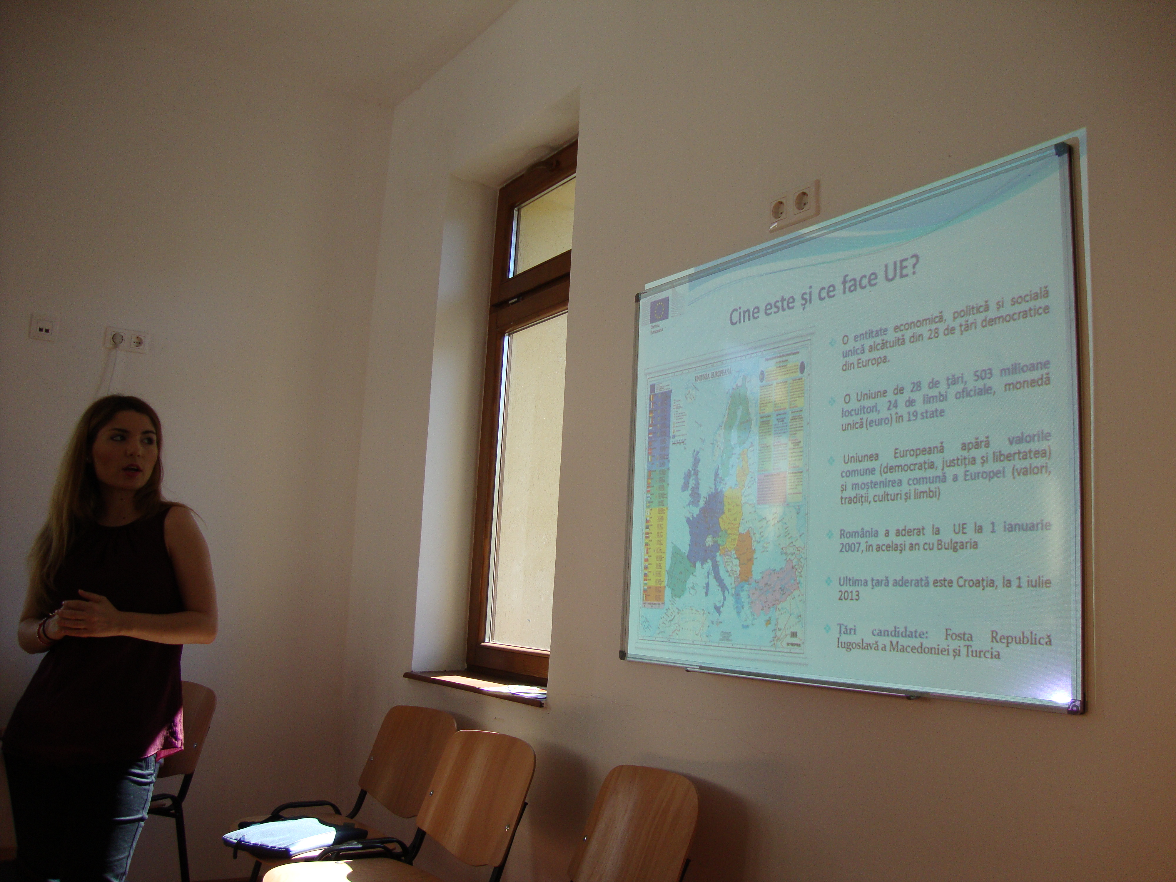 La întâlnire a participat și reprezentantul Centrului Europe Direct Maramureș, care a discutat cu elevii și profesorii despre activitățile derulate și despre colaborarea constantă dintre Centrul Europe Direct Maramureș și Școala Dumbrăvița. În final, elevii au fost implicați într-un exercițiu interactiv, pe tema valorilor europene. Toți elevii au primit publicații și broșuri pe teme europene din partea Centrului Europe Direct Maramureș.