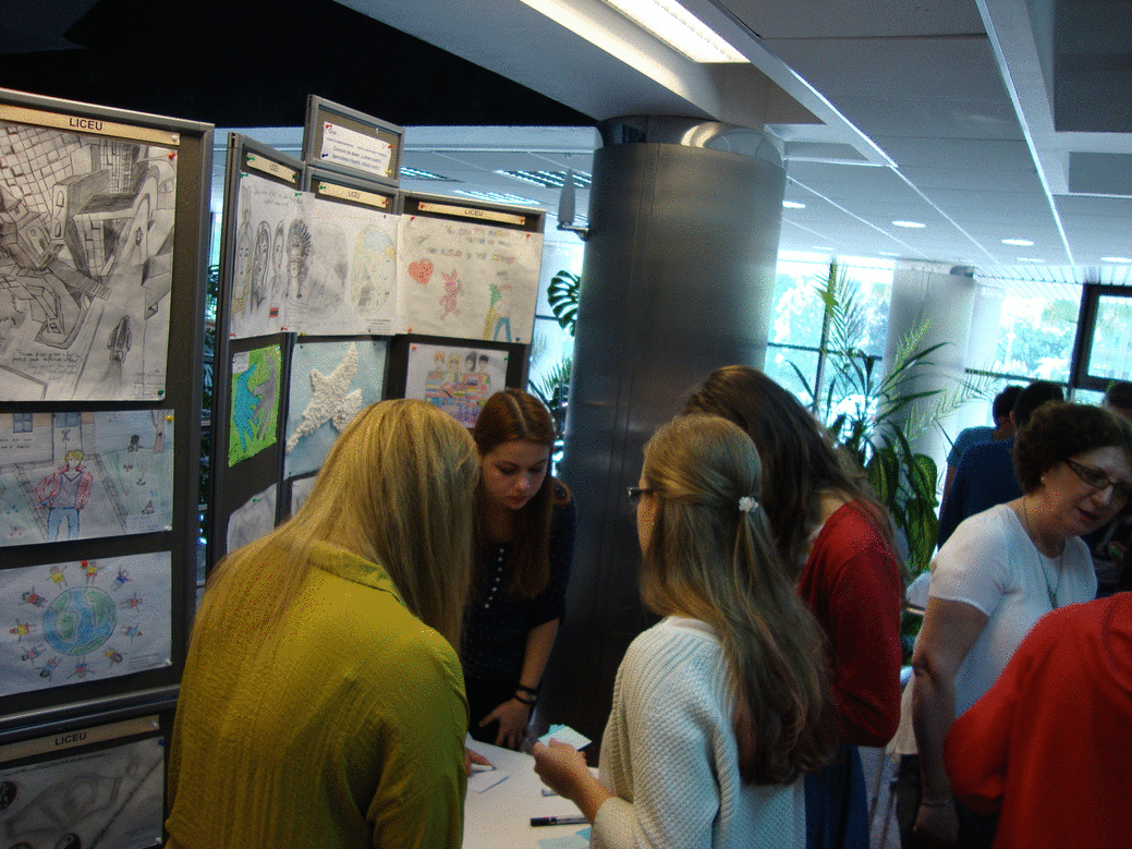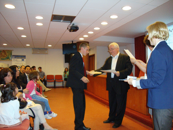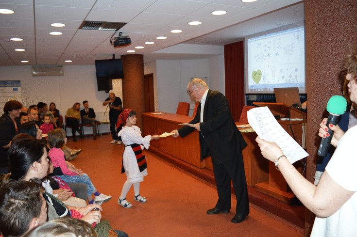 1. Festivitatea de premiere a Concursului de desen ”Lumea noastră, demnitatea noastră, viitorul nostru”, organizată de Centrul Europe Direct Maramureș. Ne bucurăm că i-am avut ca oaspeți pe colegii noștri de la Centrul Europe Direct Bacău și pe câțiva elevi de la Școala medie nr. 2, Slatina – UCRAINA. Elevii români din Slatina – Ucraina au participat cu lucrări la Concursul de desen și au venit pentru a-și prelua premiile, împreună cu profesorul lor coordonator, dl Gheorghe Opriș. Au fost acordate premii conform Clasamentului voturilor obținute pe FACEBOOK, PUBLIC și PREMII SPECIALE: