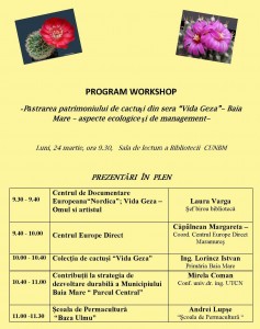 Centrul de Documentare Europeană ”Nordica” din cadrul Bibliotecii Centrului Universitar Nord Baia Mare (CUBN) a organizat luni, 24 martie 2014, a III-a ediție a Simpozionului ”Păstrarea patrimoniului de cactuşi din sera Vida Geza” pentru a omagia activitatea sculptorului băimărean Vida Geza, al cărui Centenar a fost celebrat în 2013, precum și pentru a marca implicarea municipiului Baia Mare în protejarea și promovarea colecției de cactuși a lui Vida Geza. Participanți au fost studenți ai Facultății de Resurse din cadrul CUBN, precum și alte persoane interesate în acțiuni ecologiste și de dezvoltare durabilă.