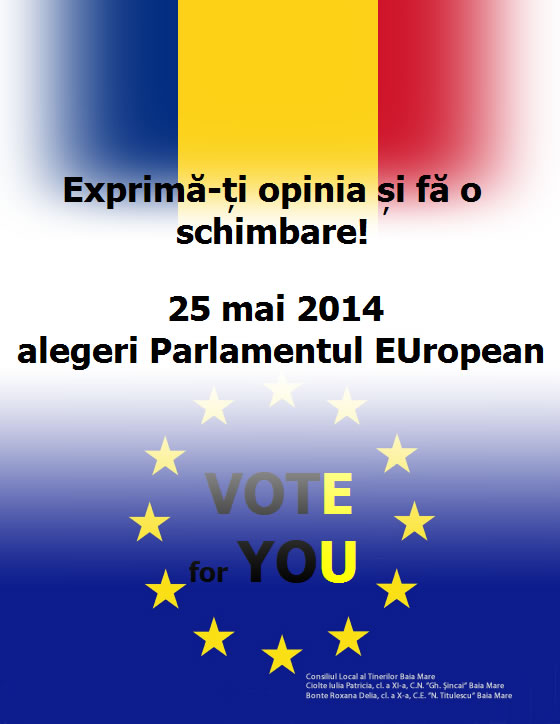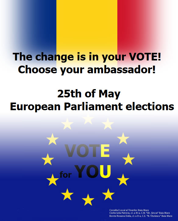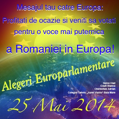 Premiile pentru Concursul „Alegerile europarlamentare 2014 – Noi decidem cine are responsabilitatea” au fost acordate în cadrul Evenimentului de exterior care a avut loc la Biblioteca Județeană ”Petre Dulfu” Baia Mare, joi – 10 aprilie 2014, începând cu ora 12.00.
