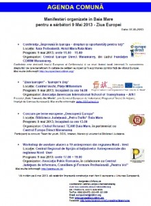 Vă invităm să participați la evenimentele organizate în Baia Mare, de Ziua Europei – 9 mai 2013, de diverse organizații implicate în activități europene: AgendaZiua Europei_2013_EDMaramures