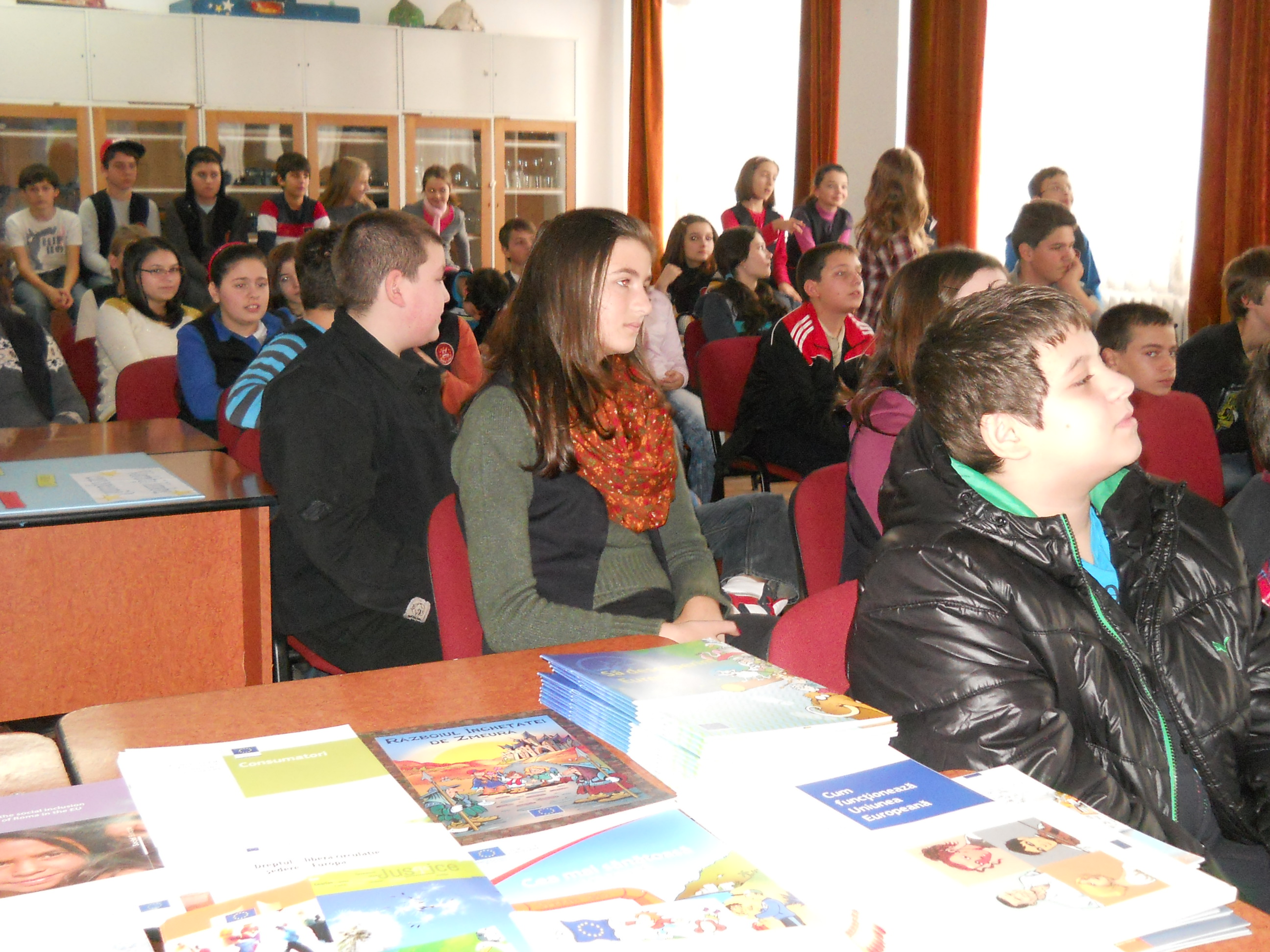 Vineri, 22 noiembrie 2013, elevi ai Școlii gimnaziale ”G. Coșbuc” Baia Mare au luat parte la ultima activitate organizată în săptămâna dedicată Festivalulului Șanselor Tale ”Cetățean român – Cetățean european”, la care a fost invitat și Centrul Europe Direct Maramureș. Elevii au vizionat filmulețul Steluța europeană prin intermediul căruia am călătorit în fiecare dintre cele 28 de state membre și au participat la un joc interactiv prin care și-au testat cunoștințele europene. Toți elevii au primit materiale informative și distractive pe teme europene.