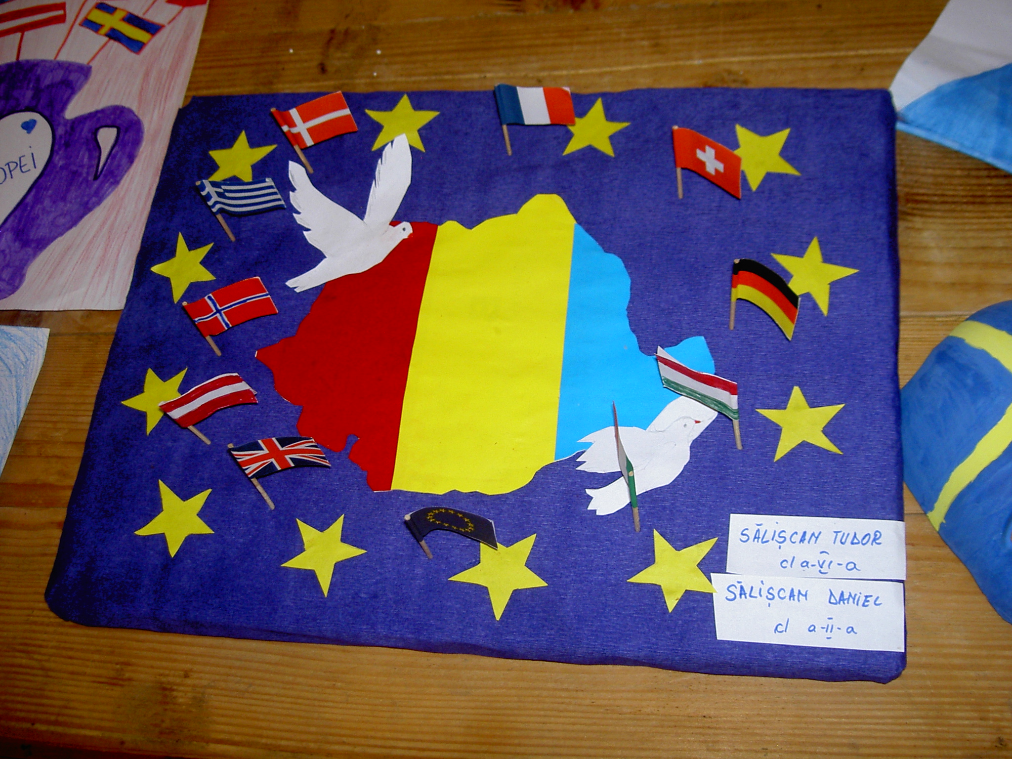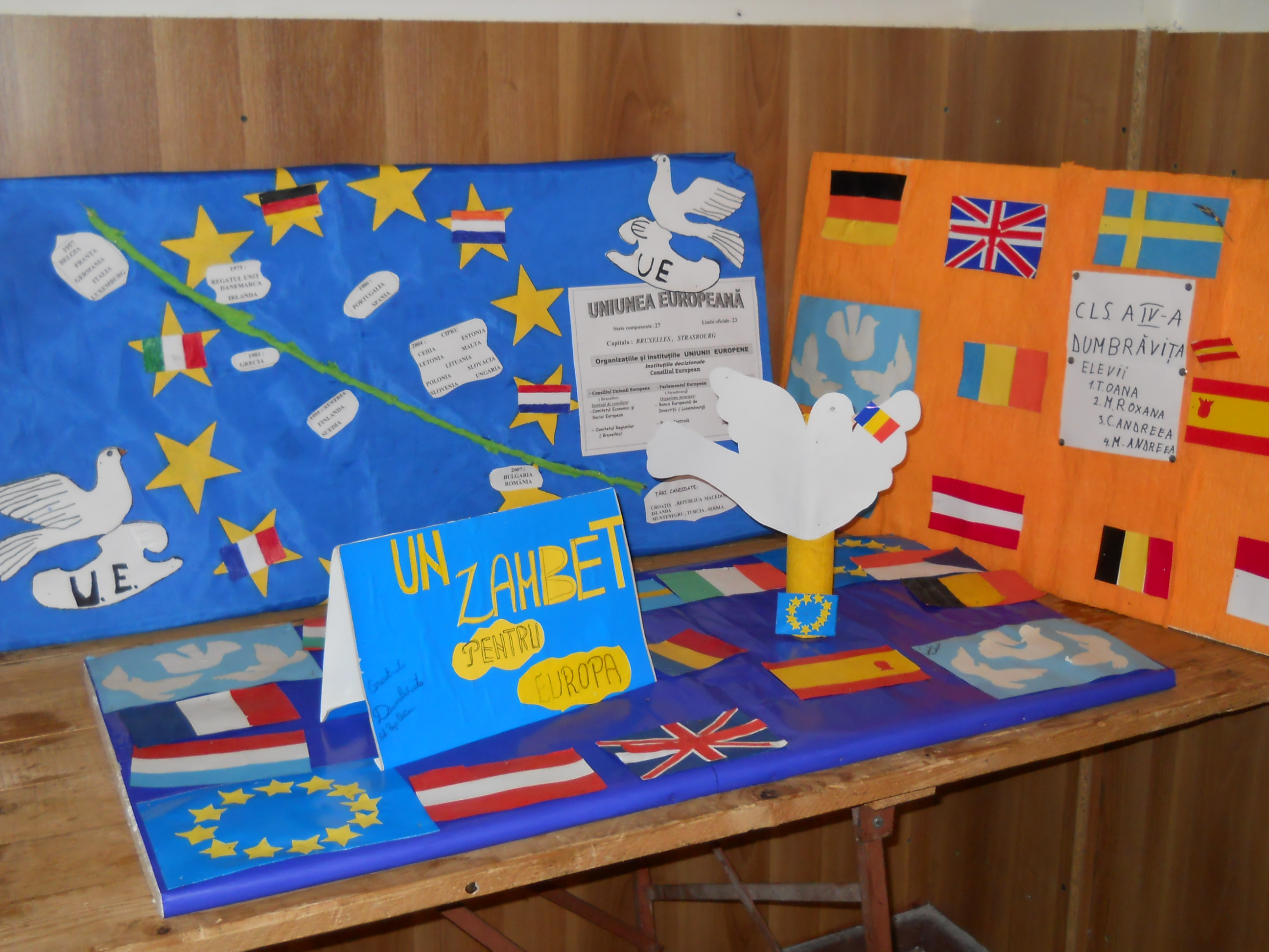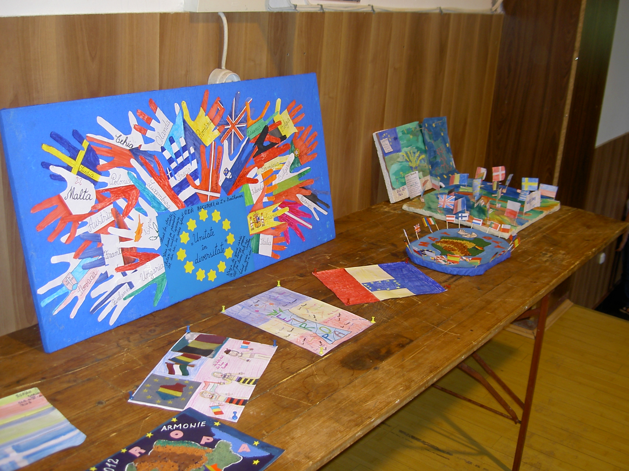 Și elevii mai mici au participat activ la eveniment, la concursul de lucrări artistice: desene, colaje, machete, prin care și-au exprimat viziunea asupra a ce înseamnă sau ce ar trebui să reprezinte Europa. Creațiile copiilor au fost expuse pe scenă, contribuind la atmosfera de sărbătoare care a fost completată de entuziasmul micilor participanți din public.