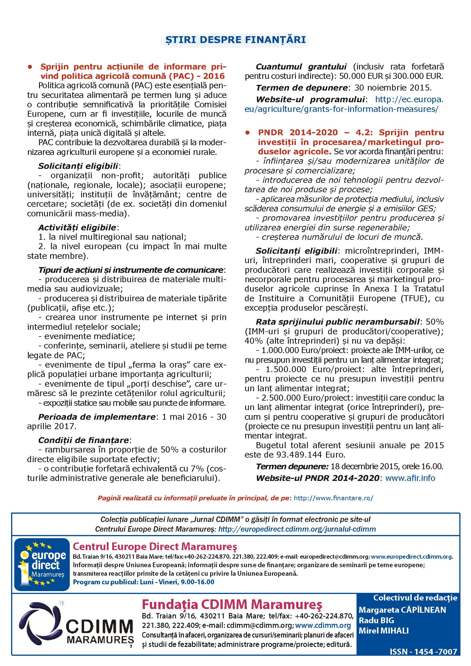 - Sprijin pentru acțiunile de informare privind politica agricolă comună (PAC) – 2016