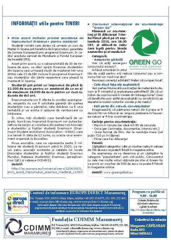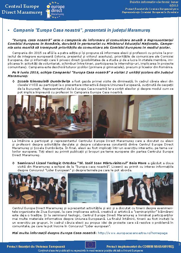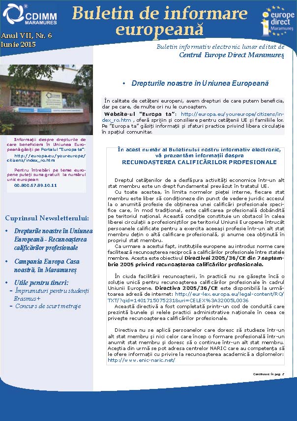 Newsletterul electronic poate fi consultat în secțiunea: http://www2.europedirect.cdimm.org/newsletter