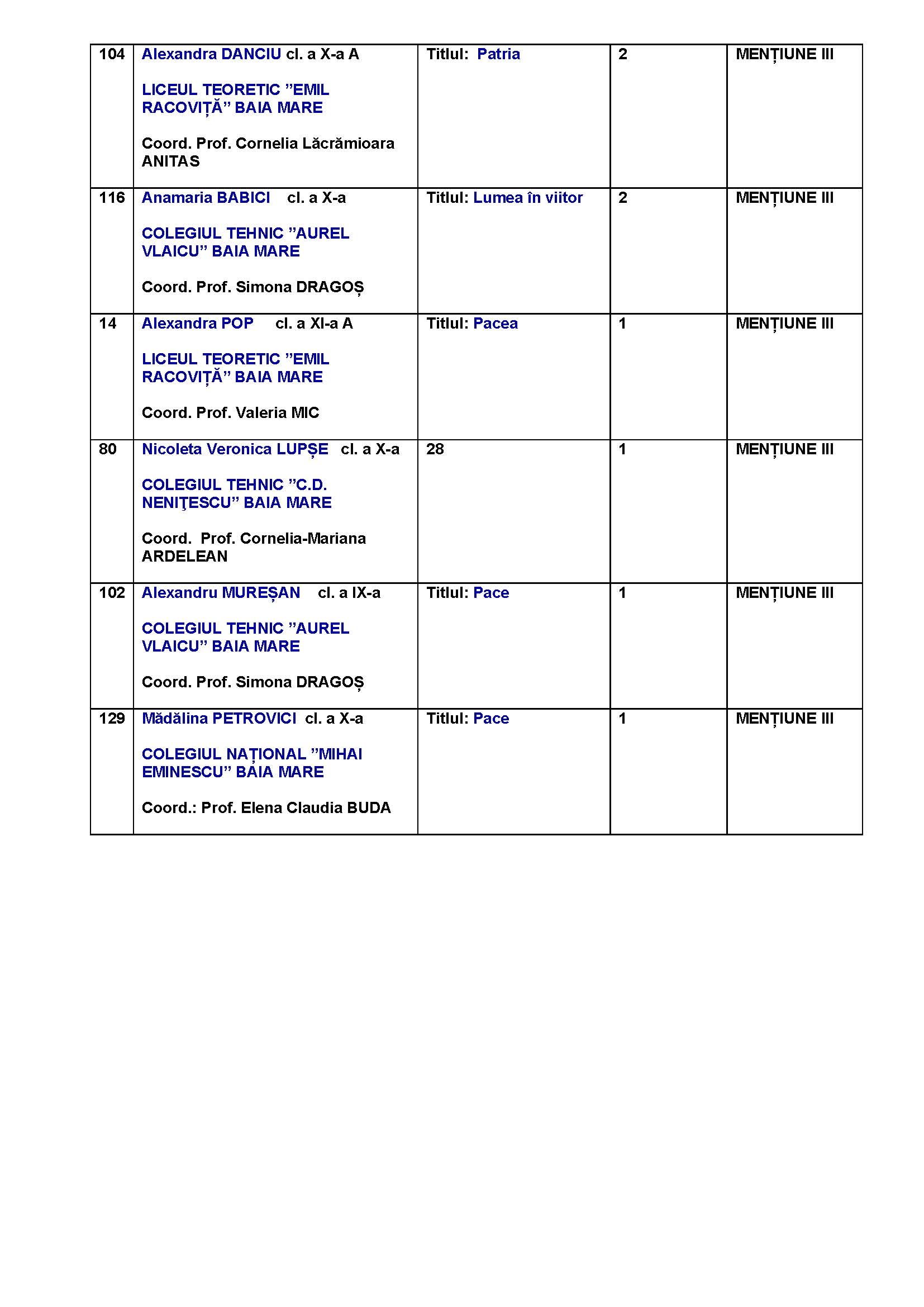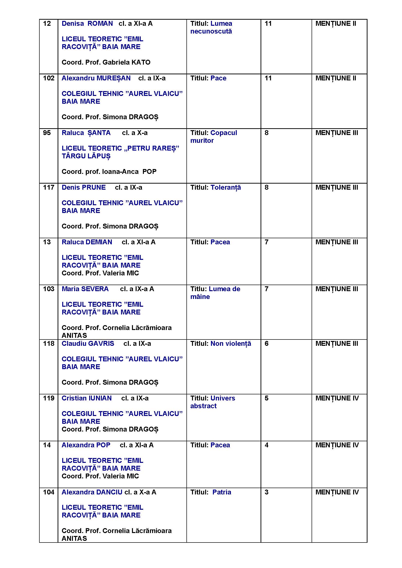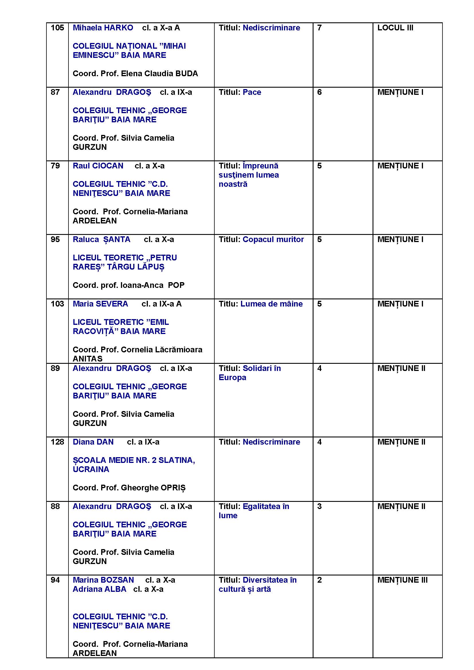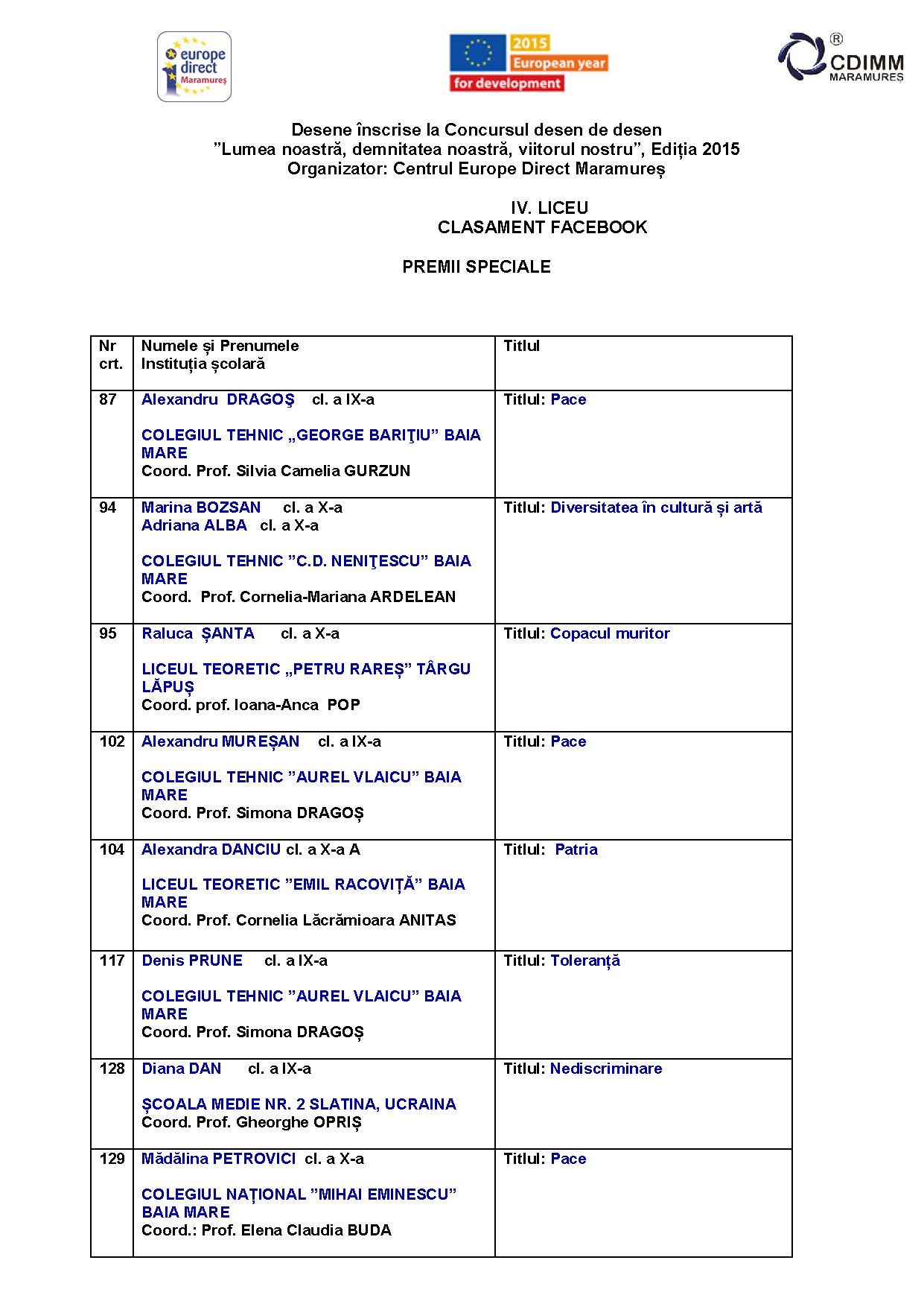 LICEU – Clasamentul Concursului de desen ”Lumea noastră, demnitatea noastră, viitorul nostru”