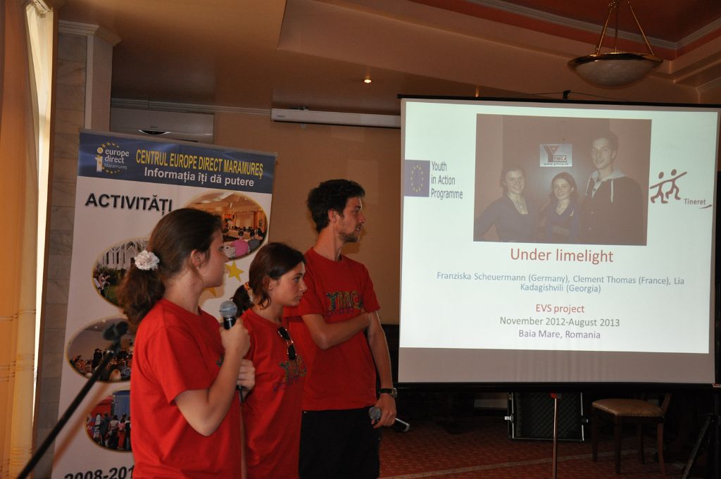 10. Proiectul „UNDER LIMELIGHT”: Franziska SCHEUERMANN – Germania; Clement THOMAS – Franța; Lia KADAGISHVILI – Georgia. Voluntari la FEDERAȚIA YMCA România . Coordonatori: Andreea LAZĂR și Alina POP