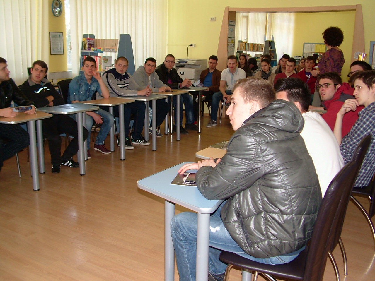 În cadrul evenimentului i-am invitat pe elevi să participe la Concursul de promovare a alegerilor europarlamentare și am distribuit broșurile de informare despre Alegerile PE 2014, realizate de Uniunea Europeană, precum și alte materiale pe teme europene. De asemenea, am discutat cu tinerii despre principale realizări ale Parlamentului European și am vizionat împreună pe http://www.myvote2014.eu/en/their-vote, modul în care europarlamentarii au votat câteva inițiative importante din mandatul care se încheie în 2014.